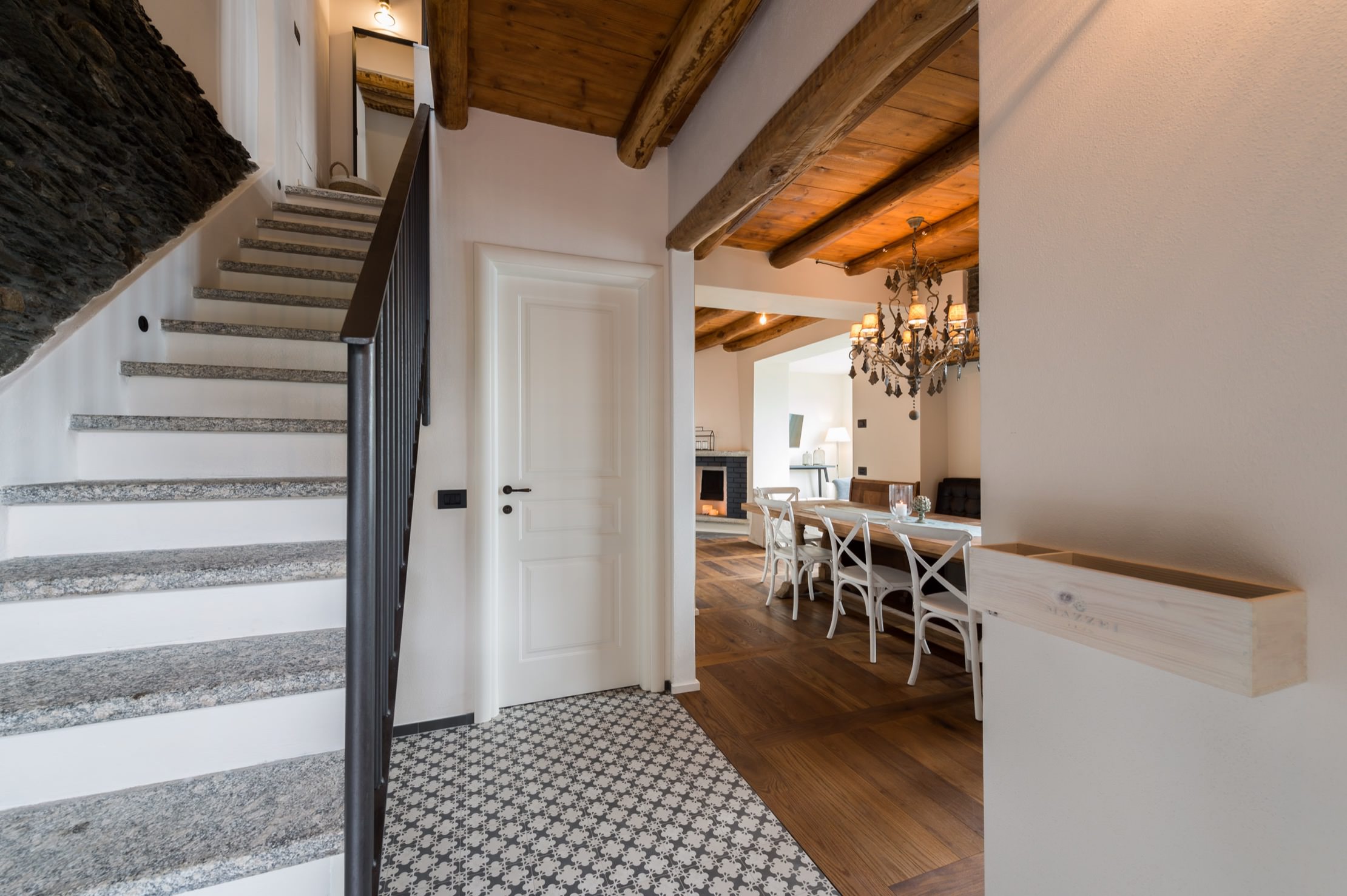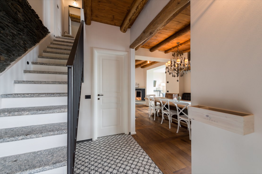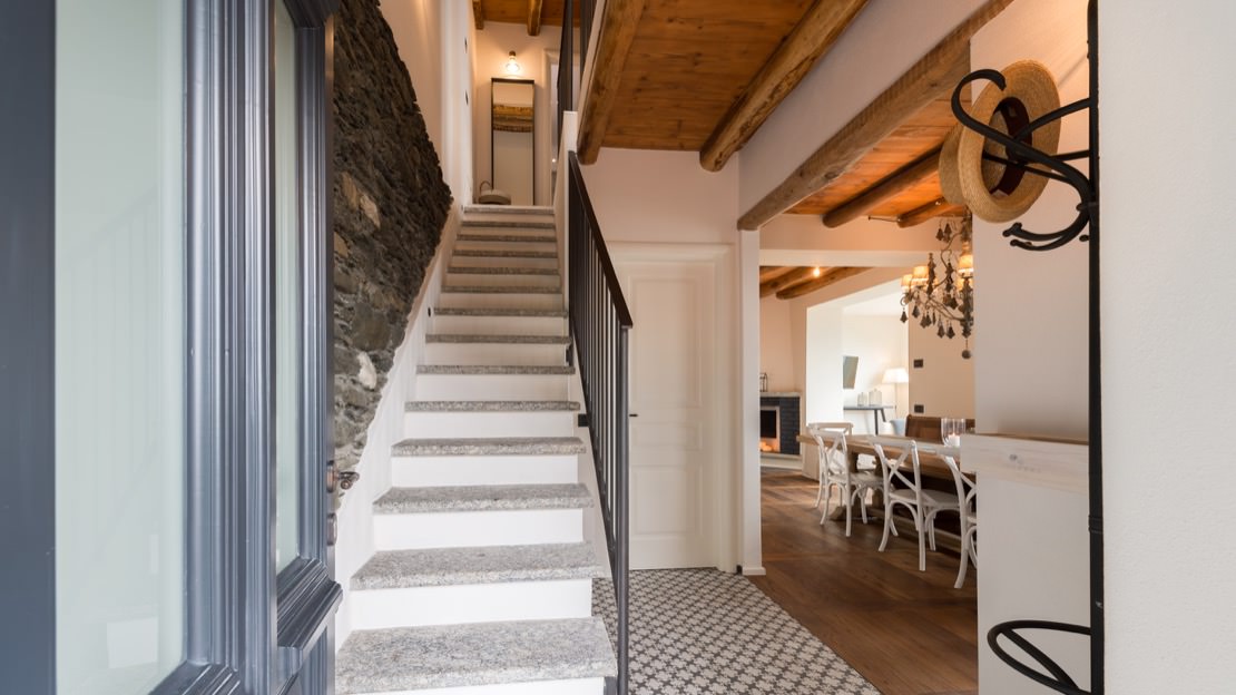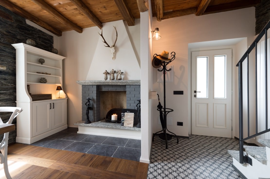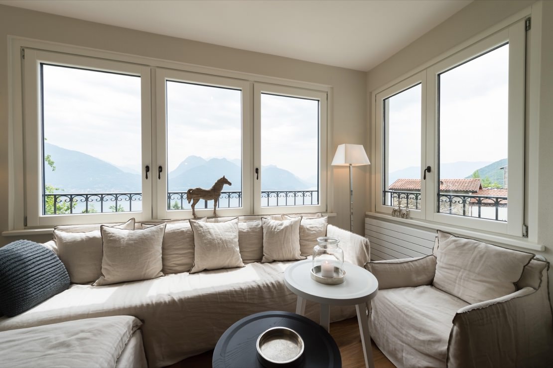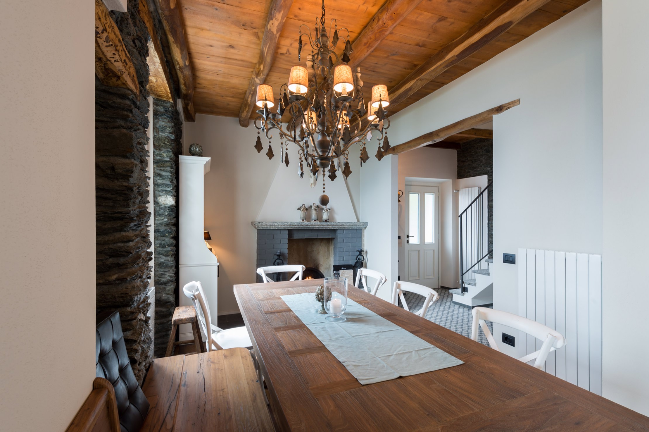 The sofa corner offers a three-seater couch and two armchairs. Here you can enjoy a 180°-view of the beautiful Lake Como. Again, there is an old fireplace (only for decoration, no fire allowed).